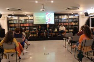 Durante o debate, discutiram como integrar as mudanças climáticas ao currículo e à cultura institucional das escolas, conectando práticas pedagógicas, gestão, infraestrutura e formação de comunidades comprometidas com o futuro do planeta. Após a apresentação, houve uma conversa aberta entre o público e os autores, promovendo troca de experiências entre educadores e profissionais preocupados com as urgências socioambientais.